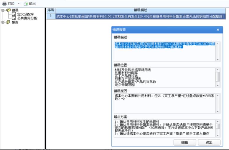 2. 成本中心[车轮车间]的共用材料[01001]本期发生有发生[20.00]但根据共用材料分配率设置无法找到相应分配基数!